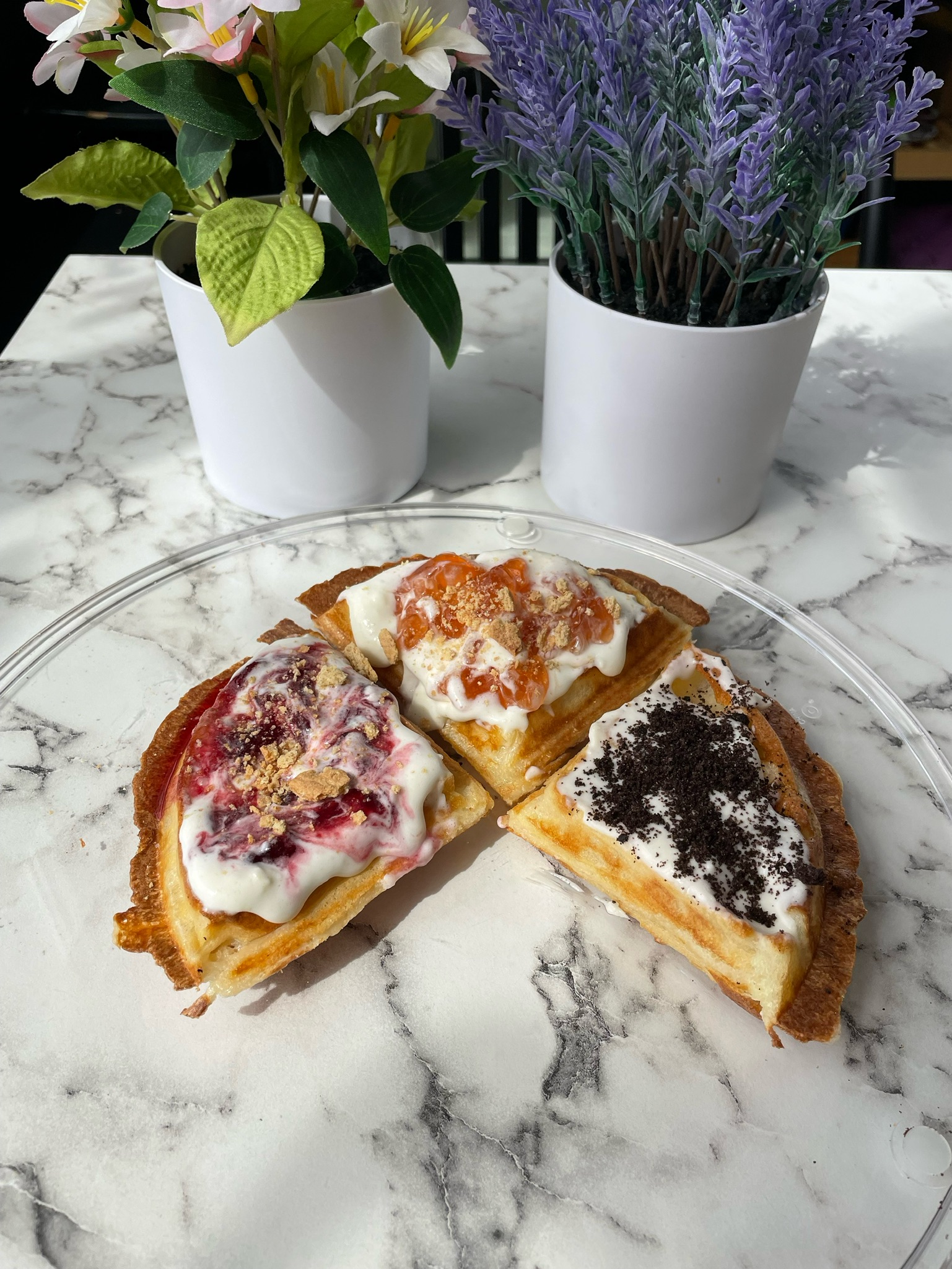 Indulgent desserts and warm waffles served with a playful mix of tropical flair and sweetness